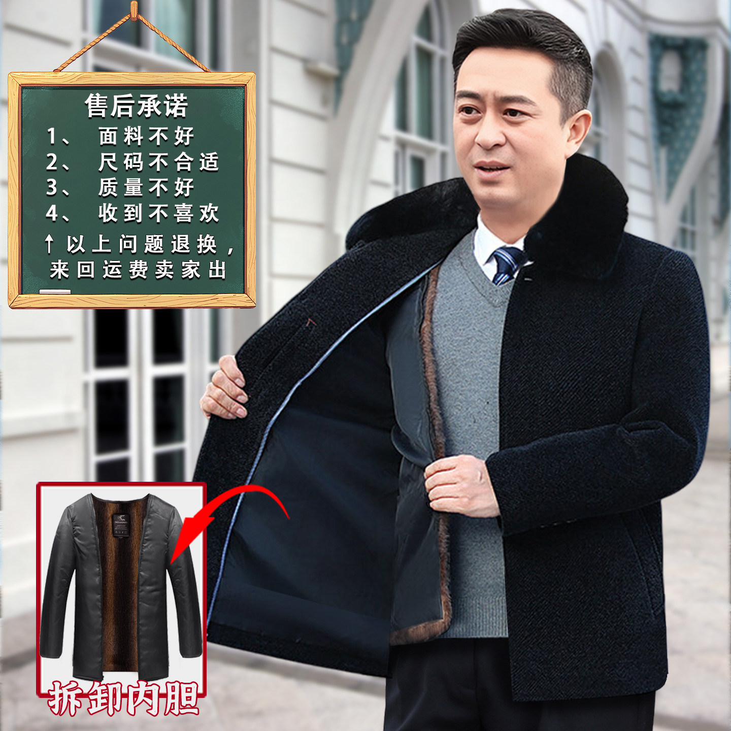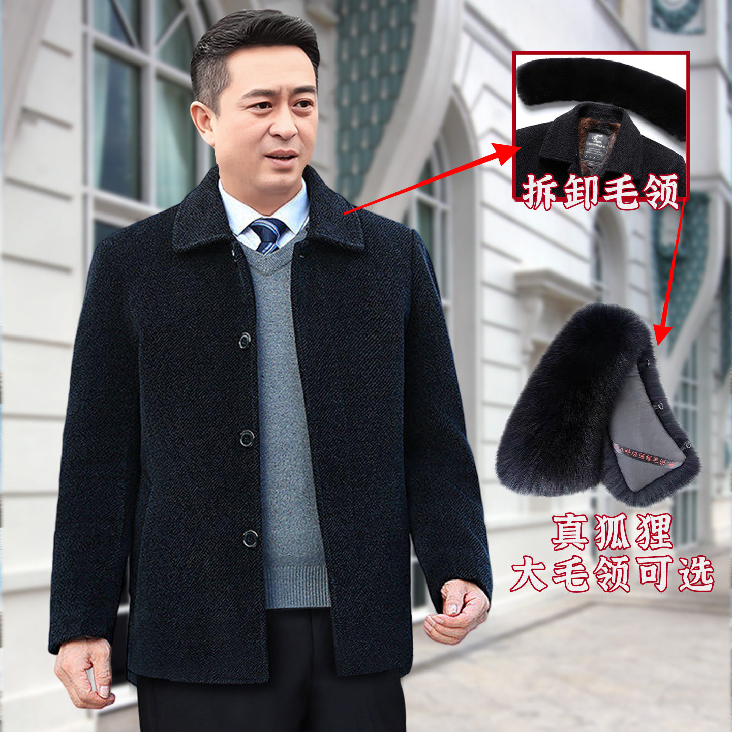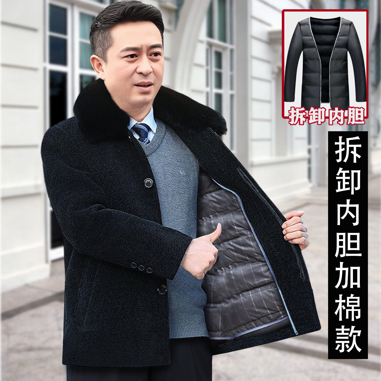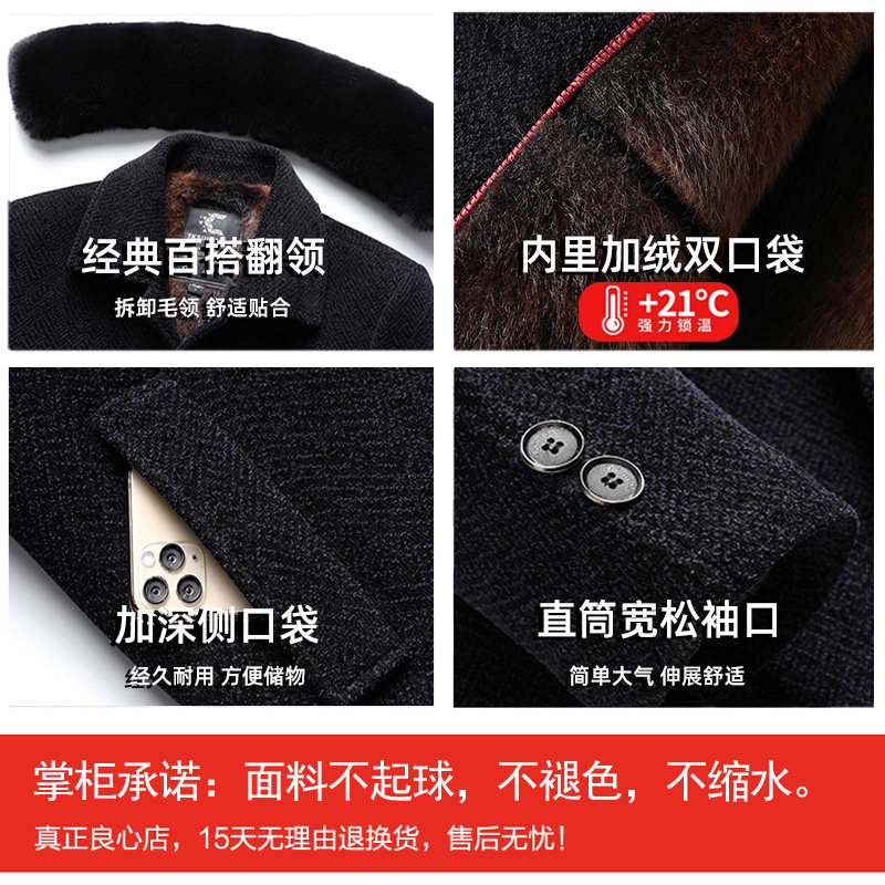 中老年棉衣男加绒加厚爸爸毛呢外套中长款老年人爷爷秋冬装棉袄