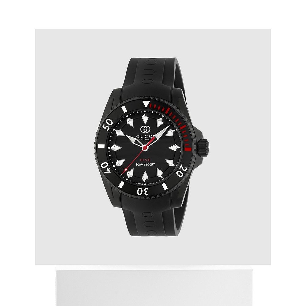 自营欧洲直邮Gucci古驰男士黑色橡胶潜水40毫米腕表