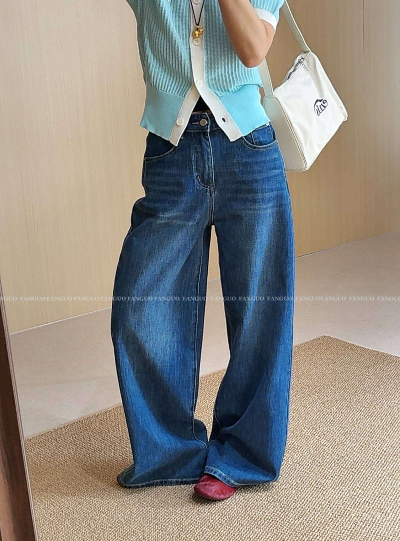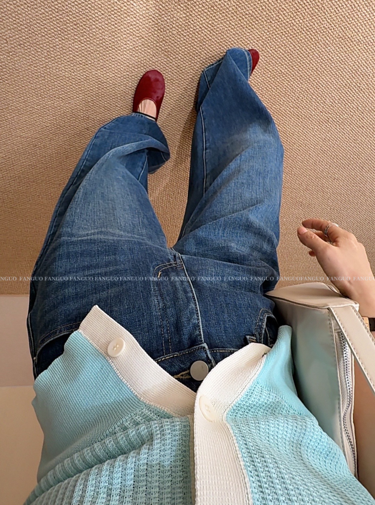 【梨形身材的梦中情裤】复古弹力显瘦直筒高腰牛仔裤阔腿裤女