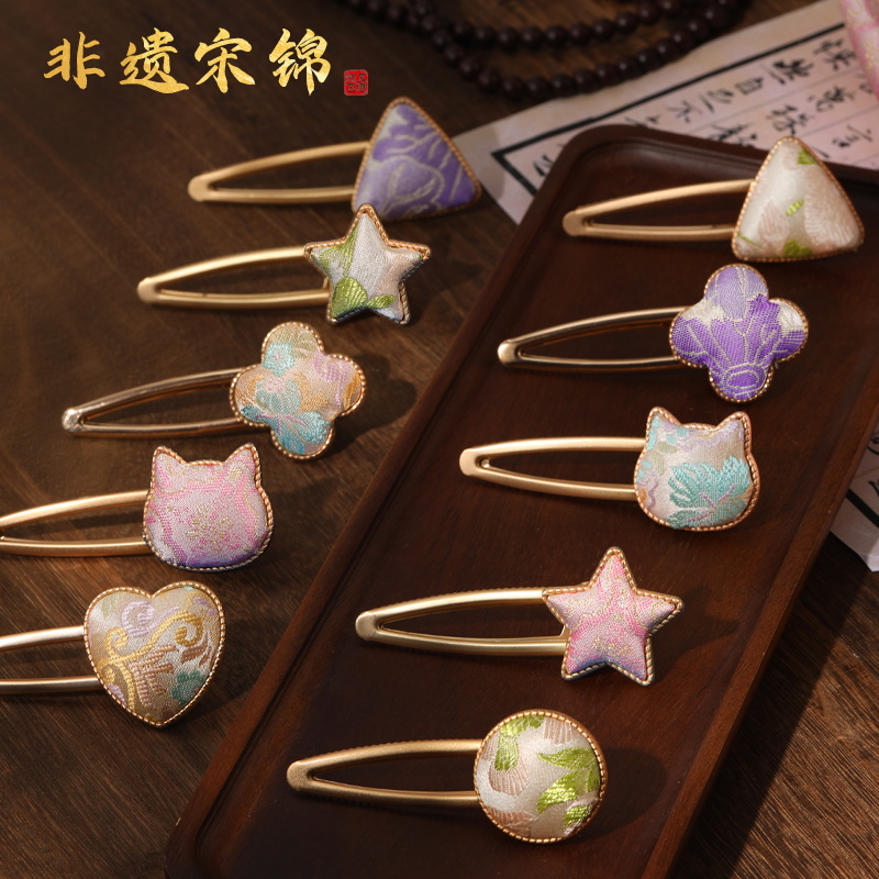 非遗手工宋锦diy材料包发夹蝴蝶葫芦发饰头绳胸针底托中秋节礼物