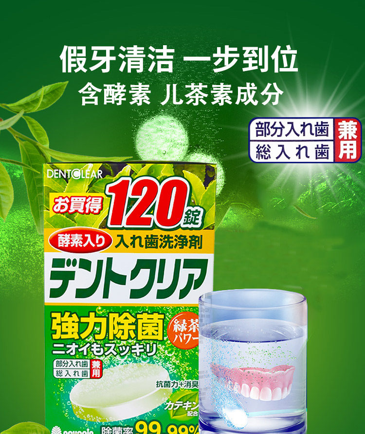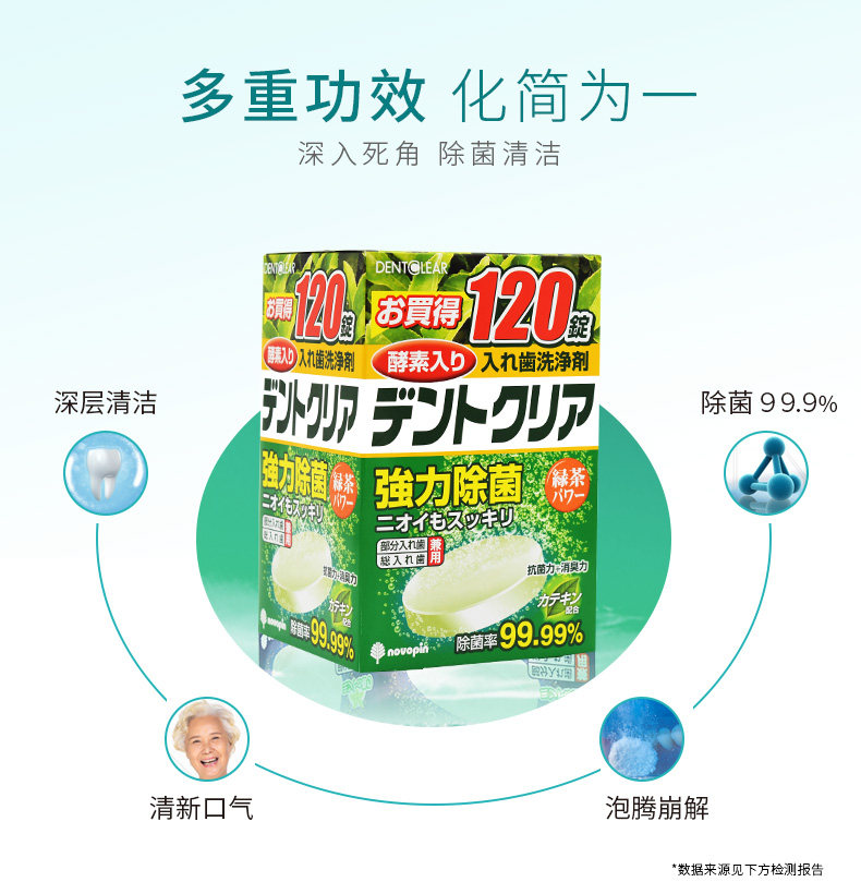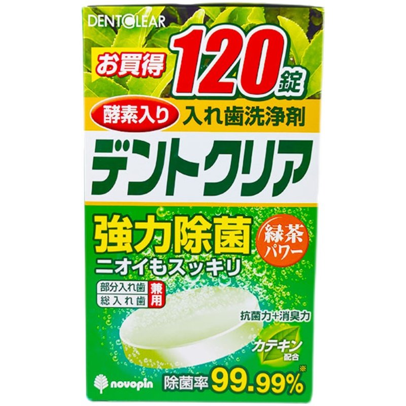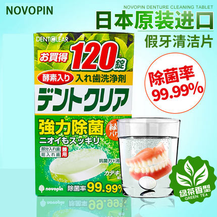 日本Novopin假牙清洁片120片绿茶味义齿牙套泡腾片假牙清洗剂进口