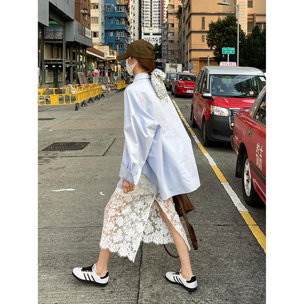 高级感蕾丝提花重工松紧腰半身裙夏季后开叉气质百搭洋气包臀长裙