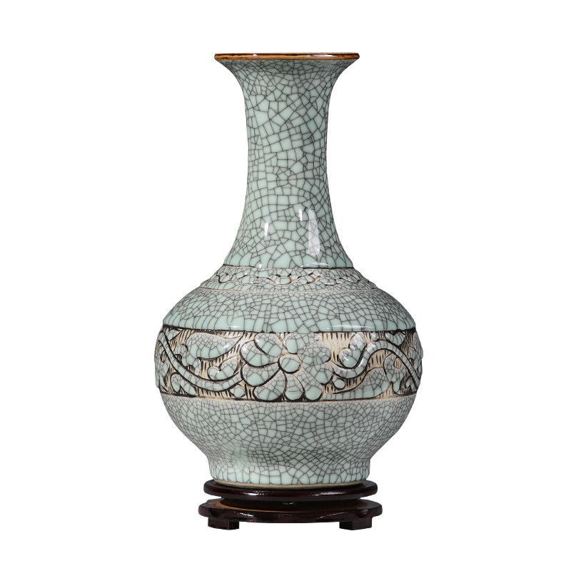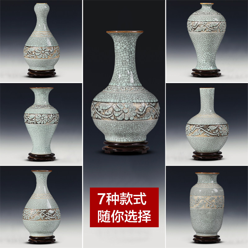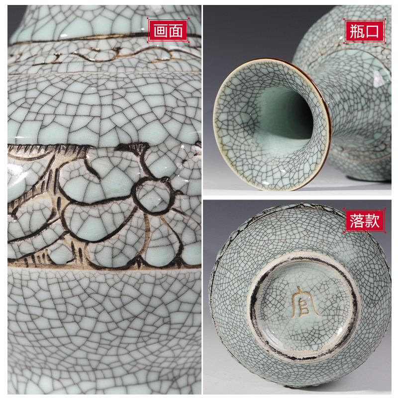 景德镇陶瓷器花瓶手工雕刻复古做旧瓷瓶子赏瓶古典客厅装饰品摆件