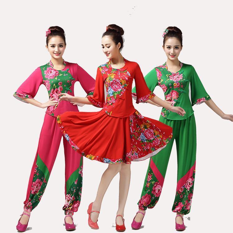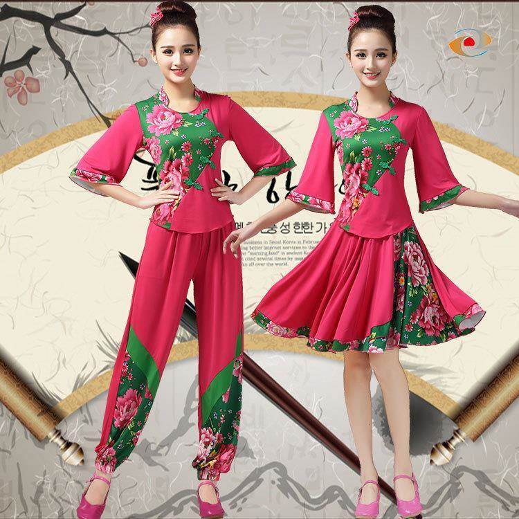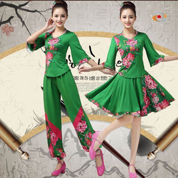 广场舞套装民族风古典舞演出服 舞蹈裙秧歌舞扇子舞 舞台表演服装
