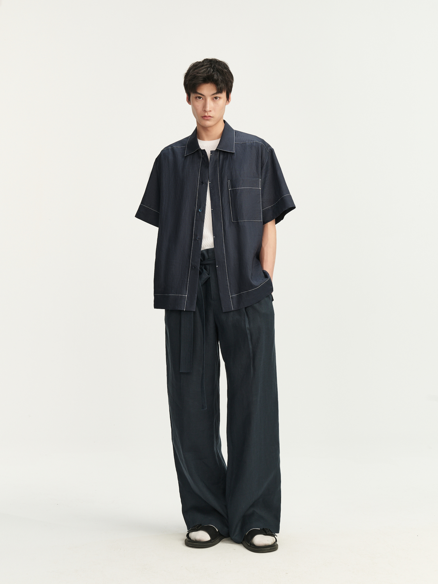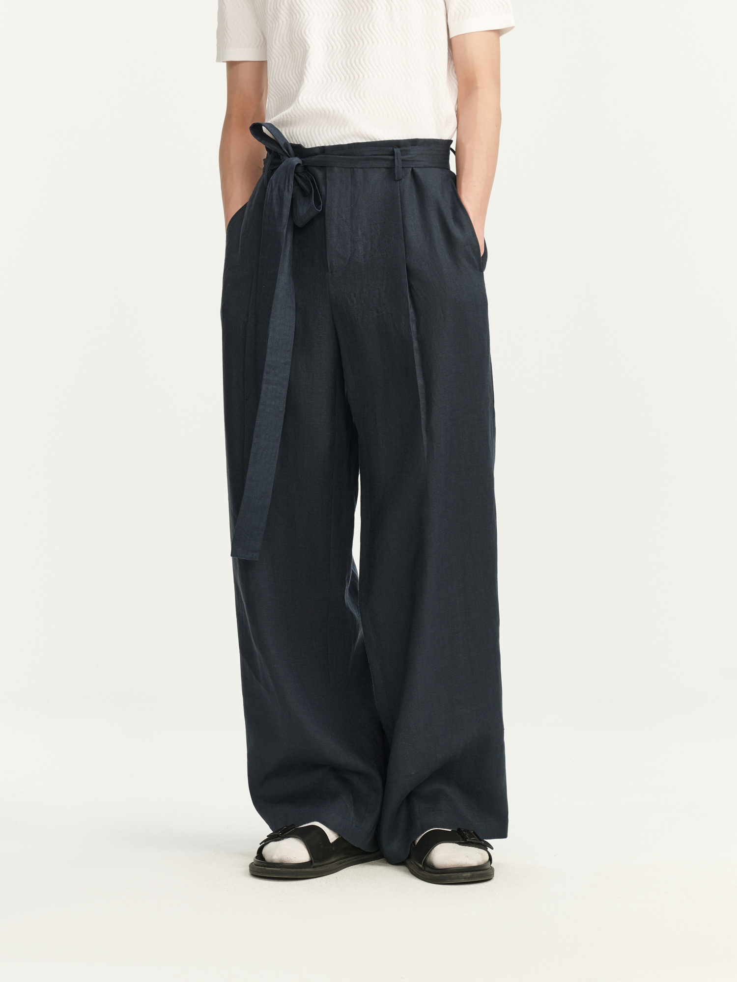 UNICA HOMME//何运晨同款 男士宽松休闲裤质感西裤亚麻阔腿裤