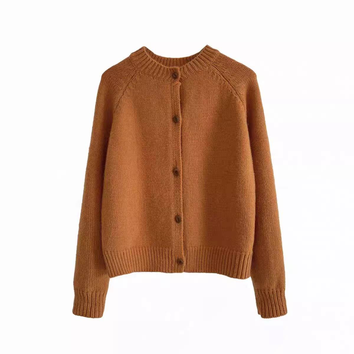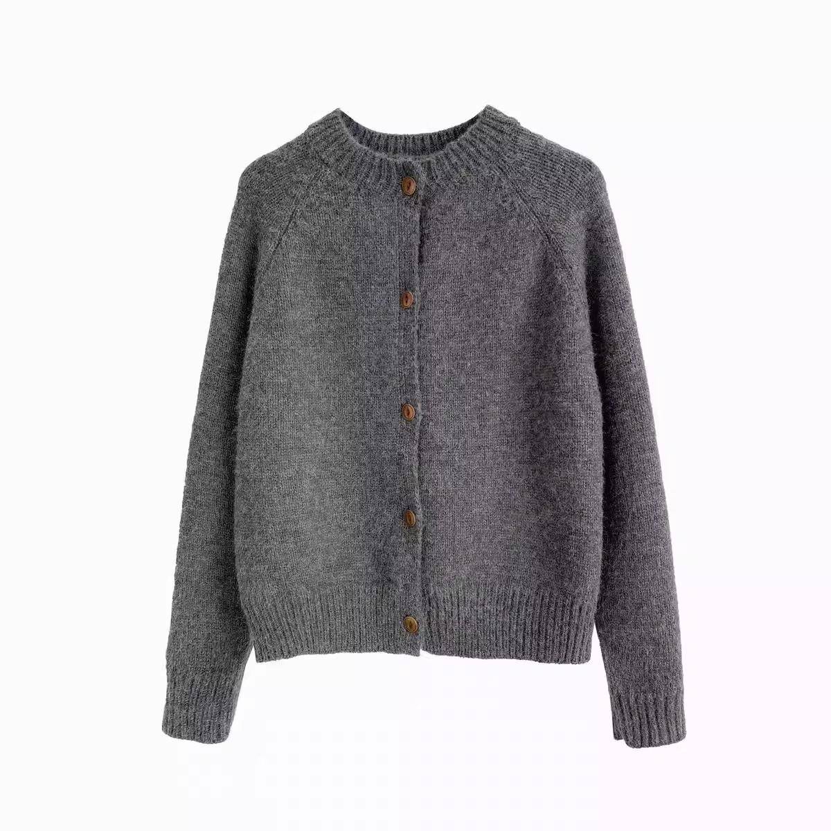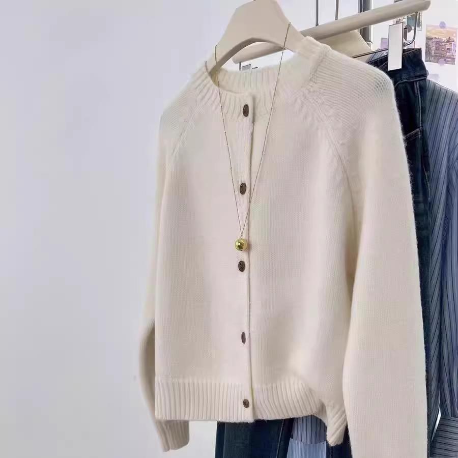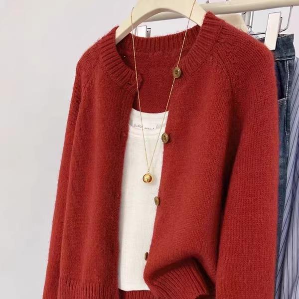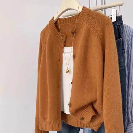 100%纯羊毛开衫女2025新款秋冬圆领针织宽松毛衣纯色羊绒短款外套