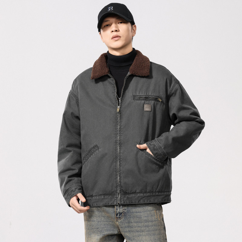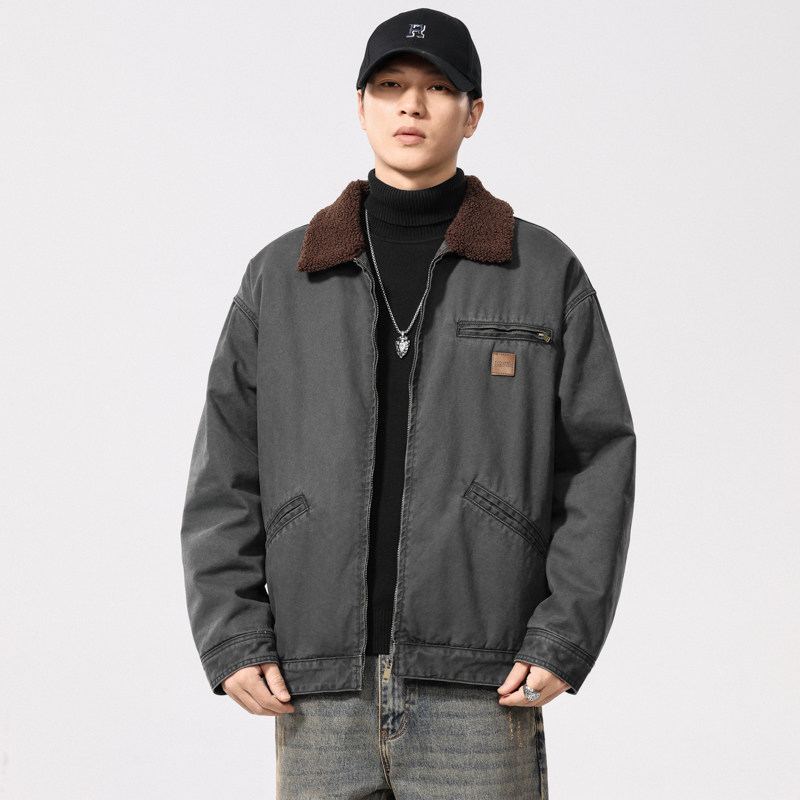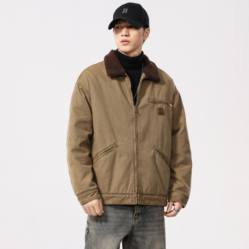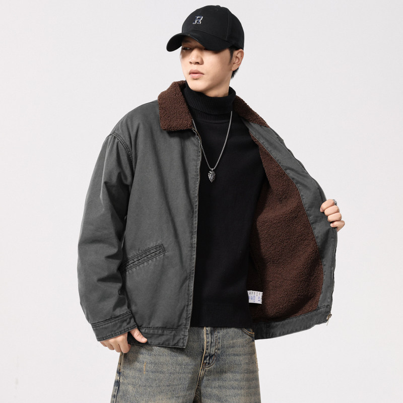 美式复古羊羔绒牛仔夹克男2025冬季宽松加厚保暖底特律工装外套潮