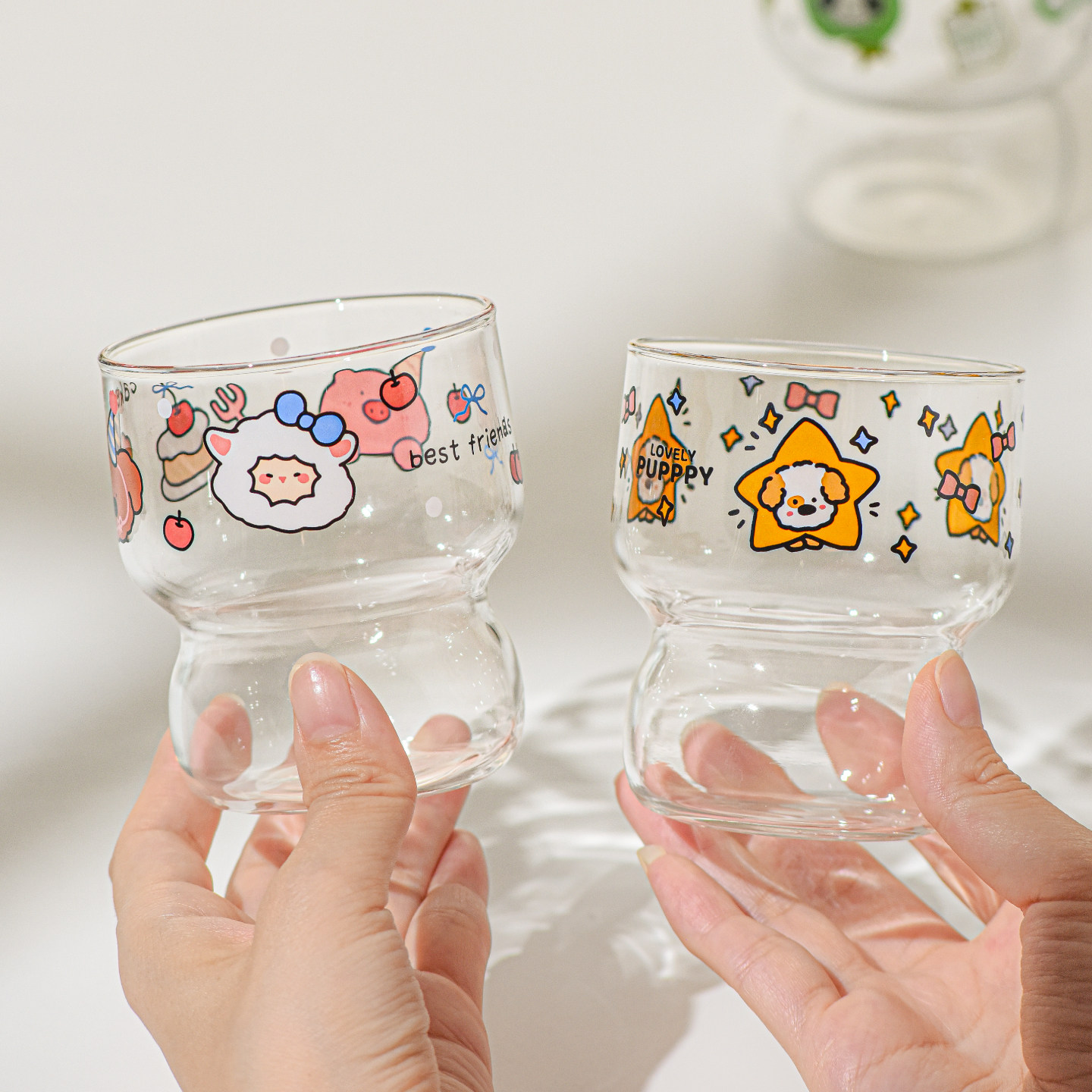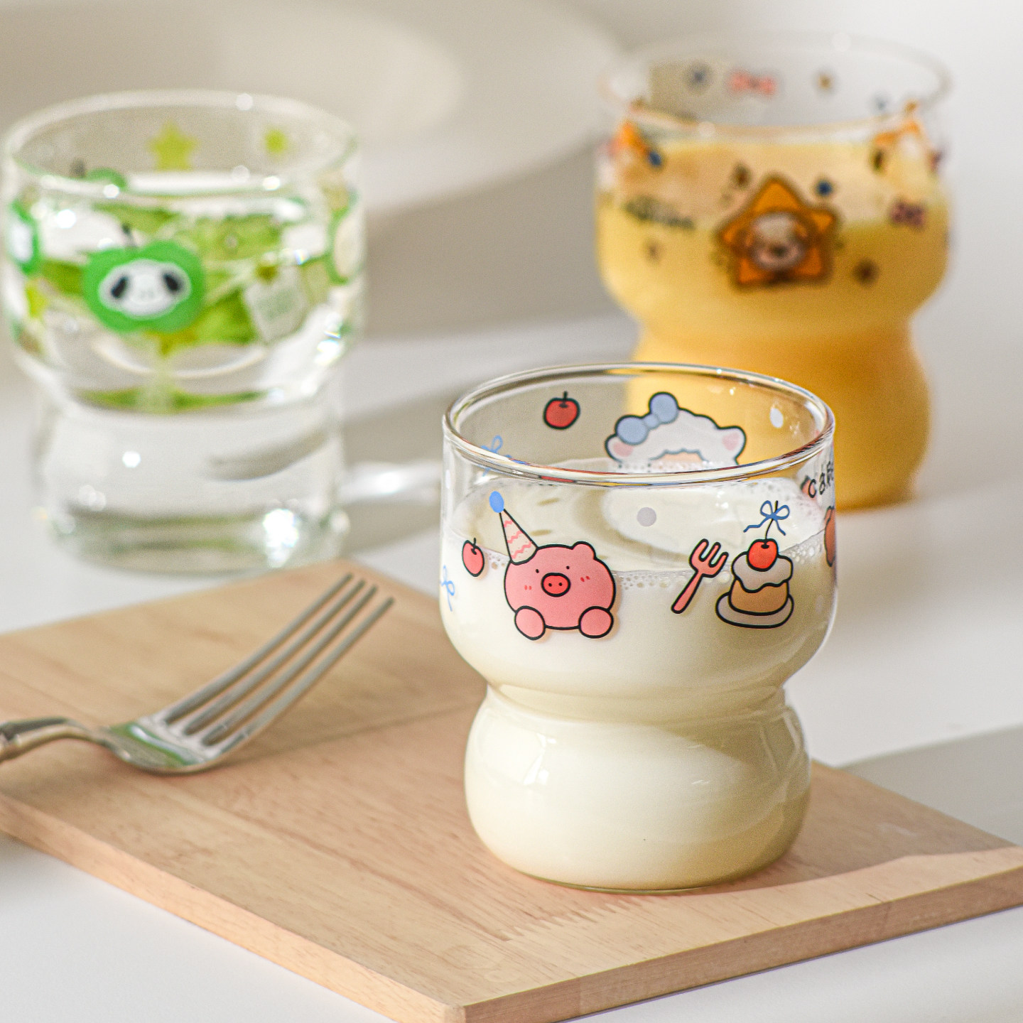 可爱玻璃杯子家用高硼硅喝水杯女高颜值儿童早餐杯牛奶杯可微波炉