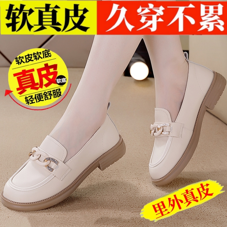 断码品牌真皮厚底小皮鞋女夏外穿2025新款英伦风软底乐福鞋单鞋子