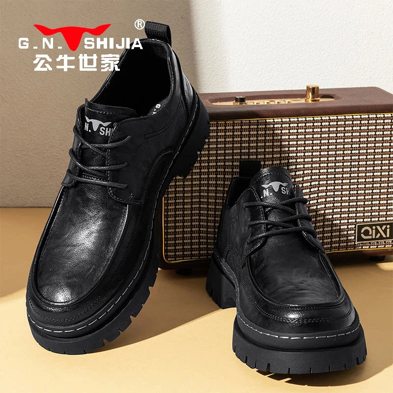 公牛世家百搭商务正装高端英伦风休闲内增高皮鞋断码清仓男鞋