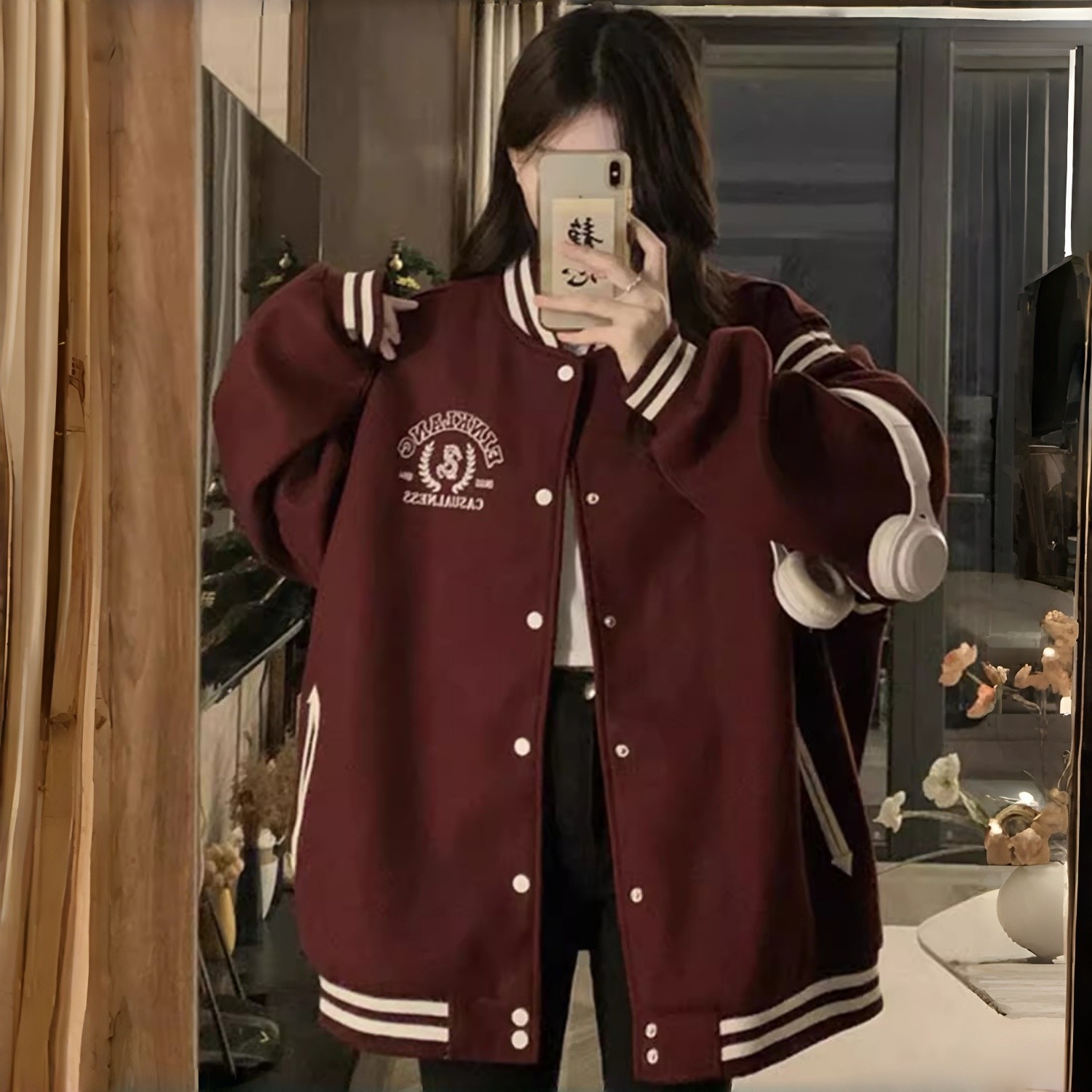 棒球服女外套新款春秋小众设计感洋气美式复古国朝大码胖妹妹宽松