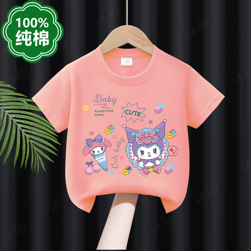 美乐蒂女童短袖t恤夏装女孩洋气库洛米衣服儿童半袖纯棉上衣卡通