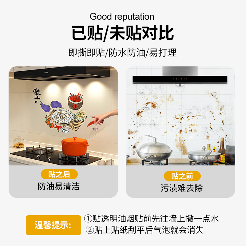 2025喜庆厨房专用防油贴纸灶台防水透明耐高温阻燃静电墙贴画墙纸