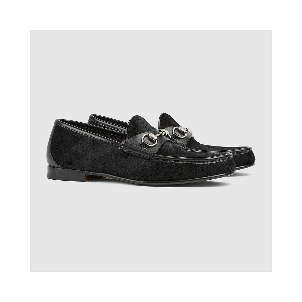自营欧洲直邮Gucci/古驰 男士黑色麂皮马衔扣乐福鞋辛鞋