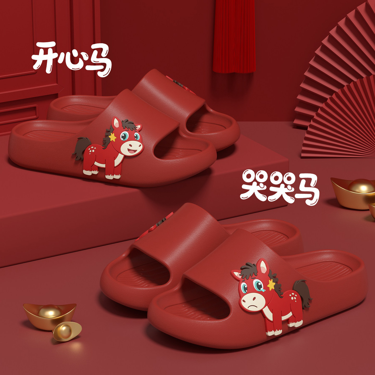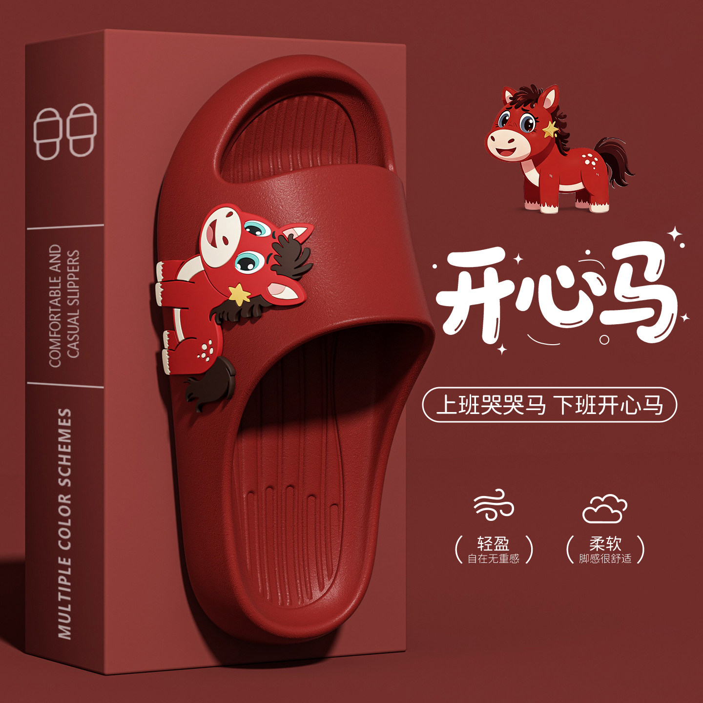 下班开心马儿童款凉拖拖鞋女男2026新款居家用情绪价值红色哭哭马