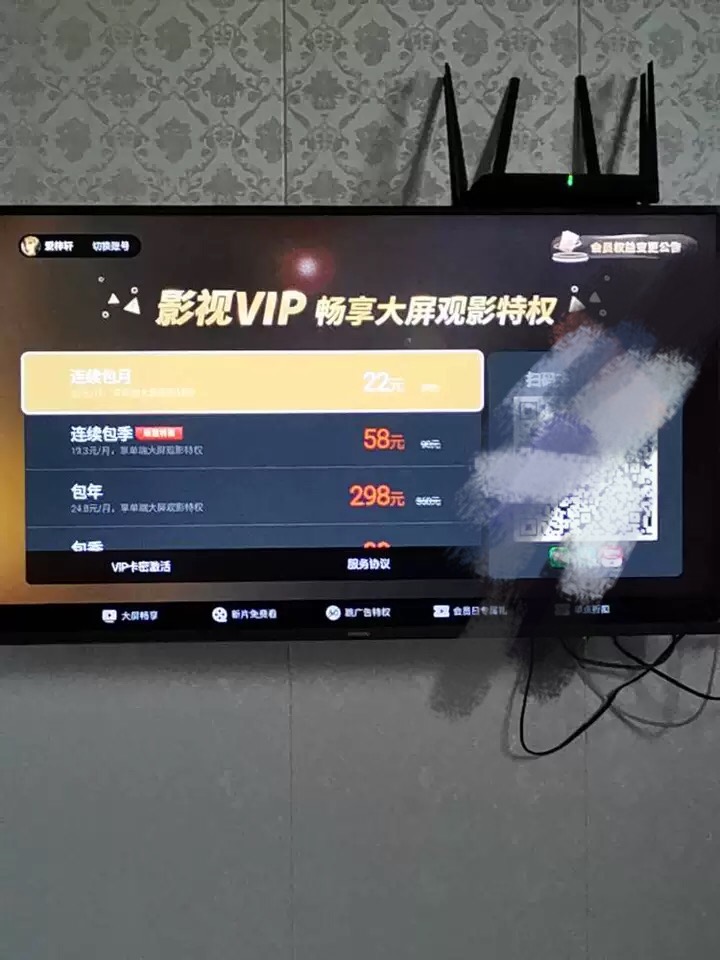 创维酷开自带影视VIP包年卡主页右上角CCTV新视听