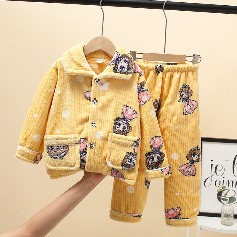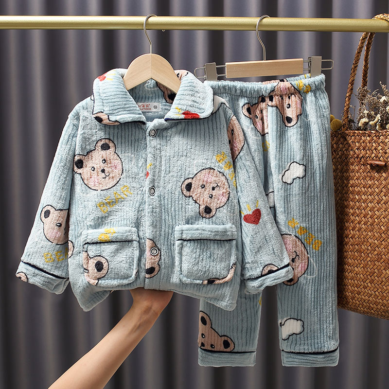秋冬季宝宝男童小女孩法兰绒家居服 卡通加厚珊瑚绒儿童睡衣套装