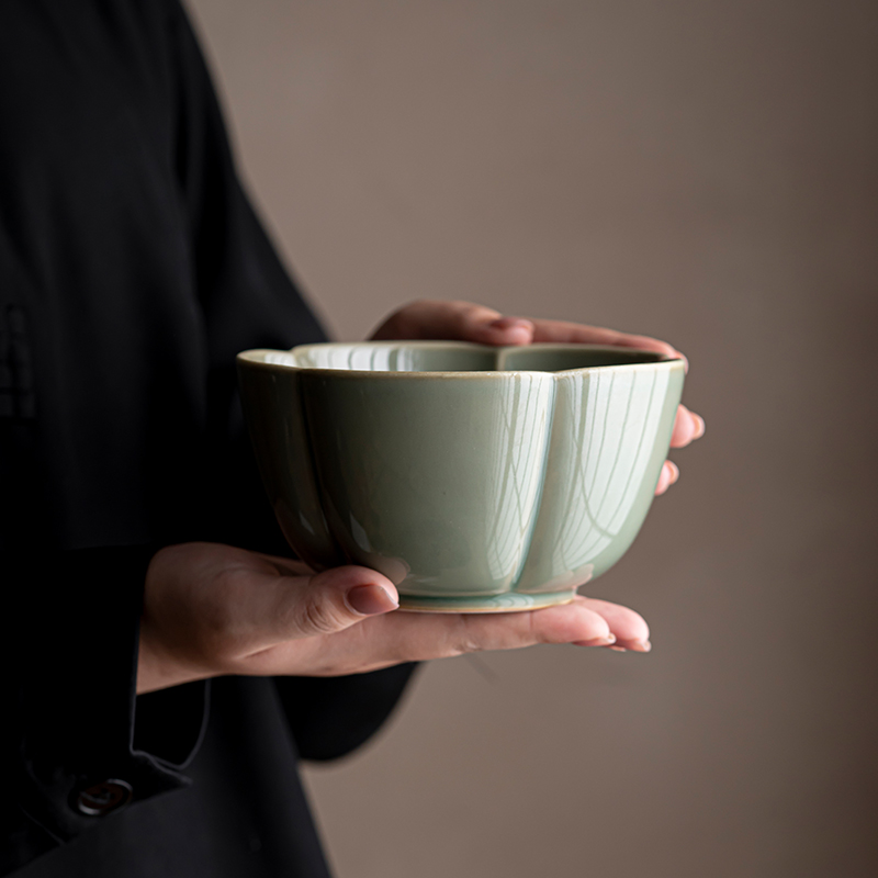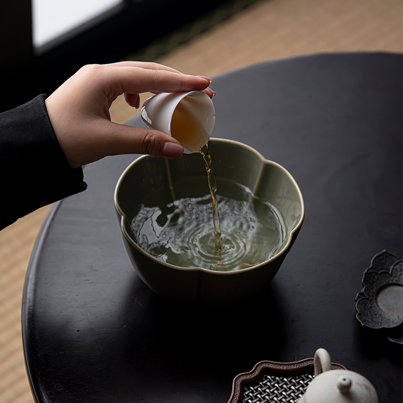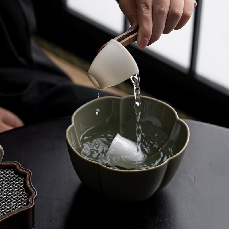 草木祠越窑青瓷花瓣建水陶瓷茶洗中式大号功夫茶具笔洗茶渣缸水盂