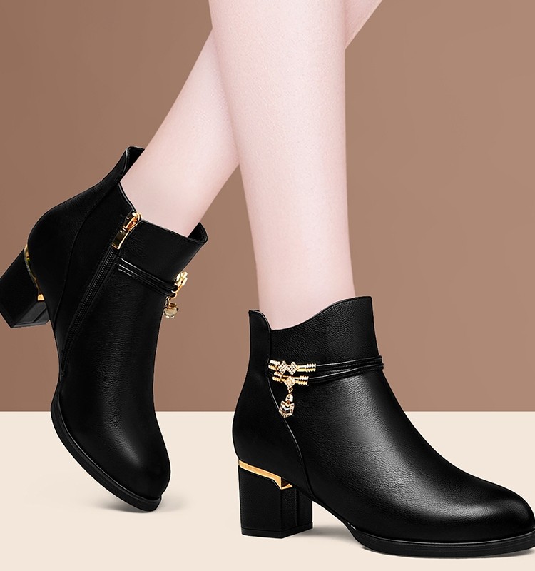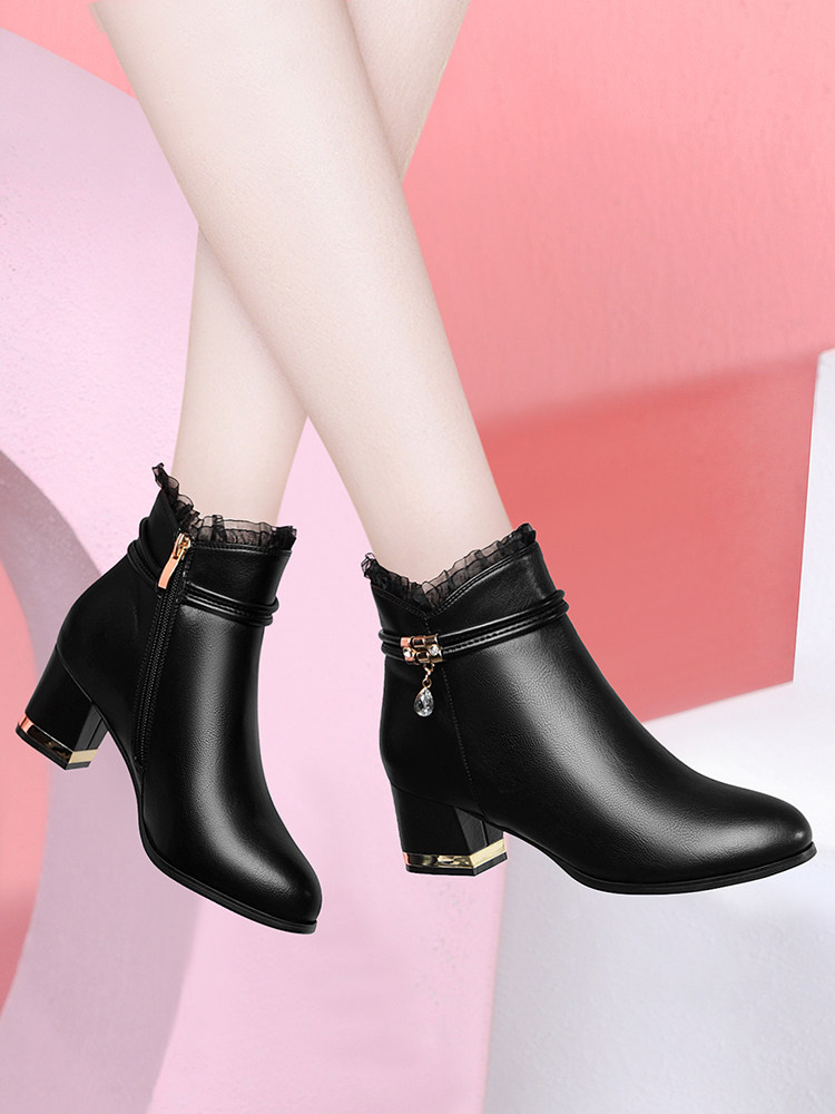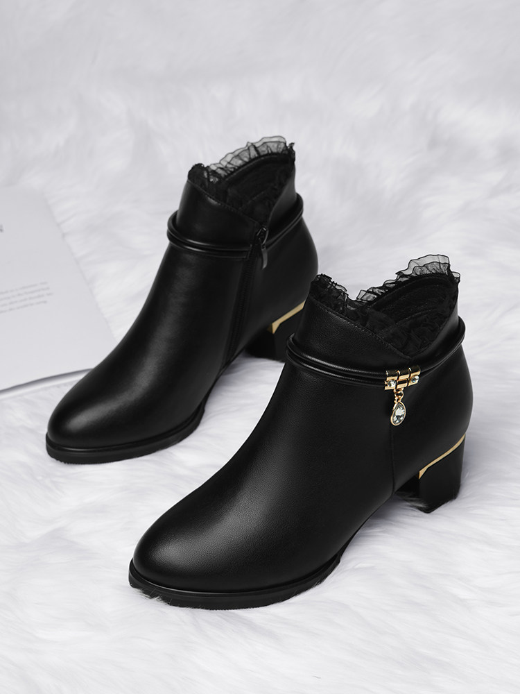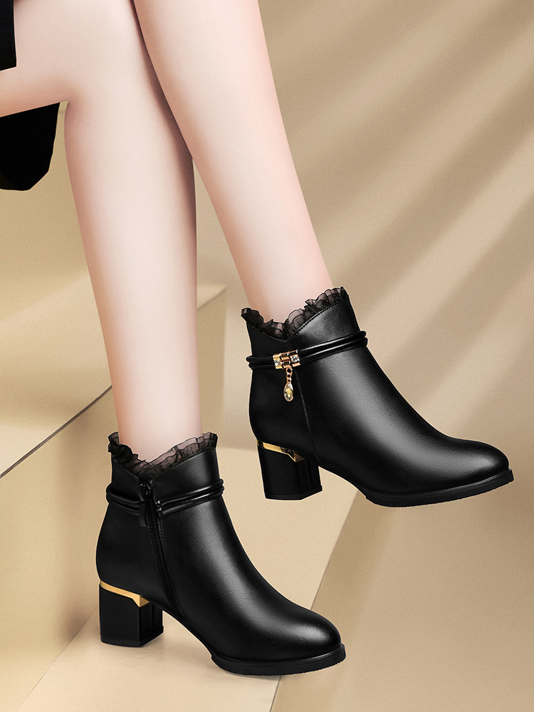 秋冬气质优雅短靴女士单靴粗跟马丁靴2025春秋季皮鞋真皮女高跟鞋