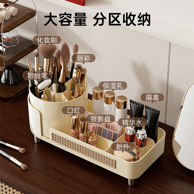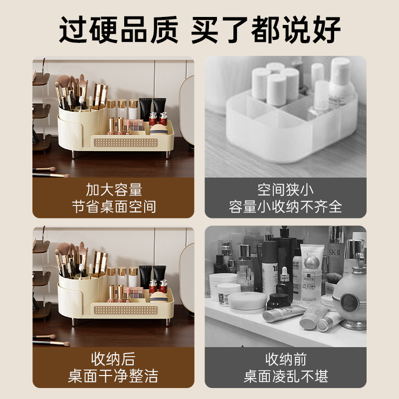 旋转化妆品收纳盒桌面高级感化妆刷口红整理筒梳妆台护肤品置物架