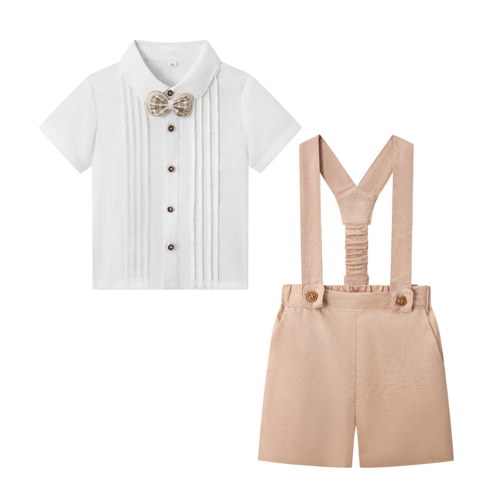 周岁男宝宝礼服儿童英伦短袖短裤生日套装男童洋气背带裤源头工厂