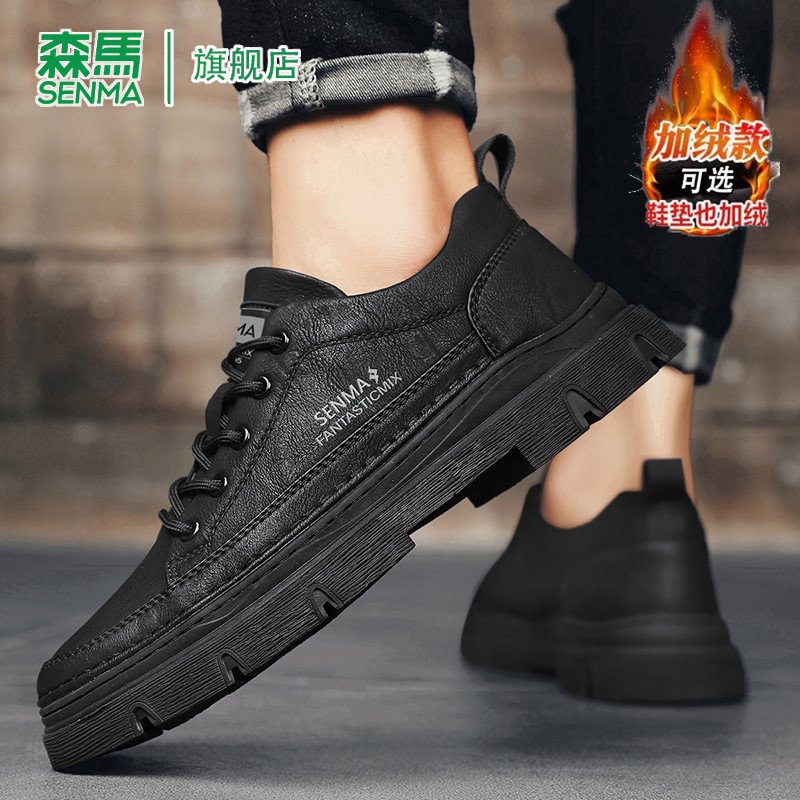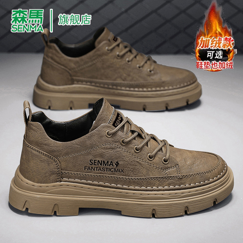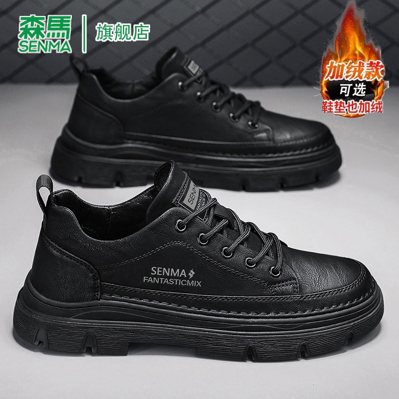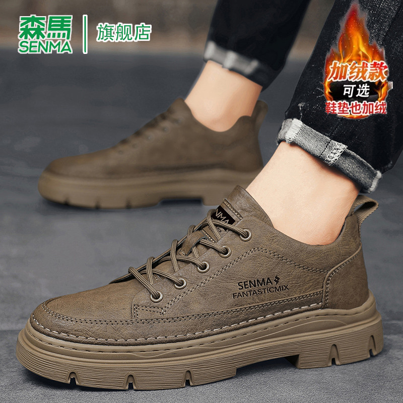 森马男鞋冬季英伦风商务加绒保暖休闲皮鞋2025新款低帮防滑马丁靴