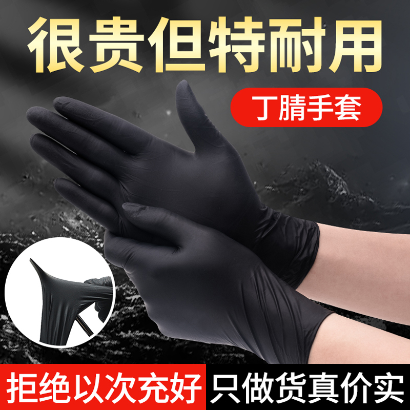 珂邻一次性手套丁腈耐用型加强加厚耐磨黑色乳胶橡胶食品丁睛纹身