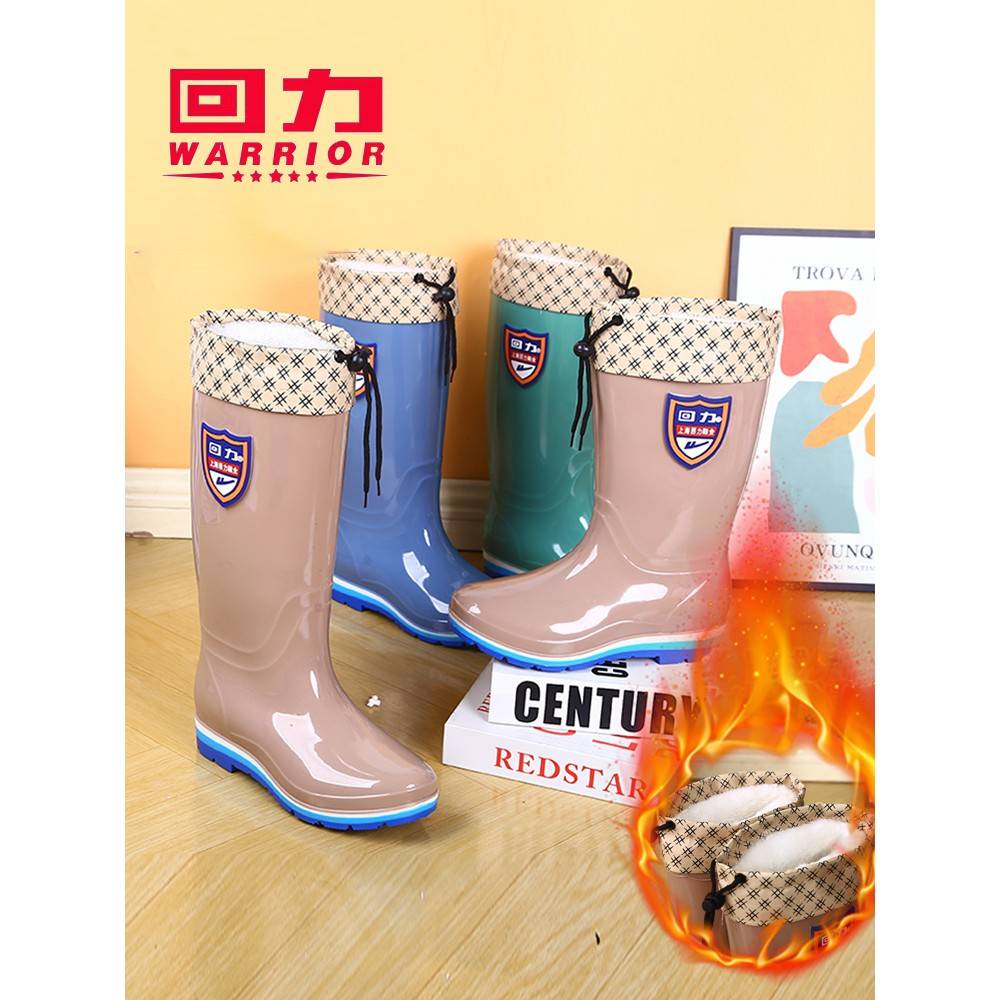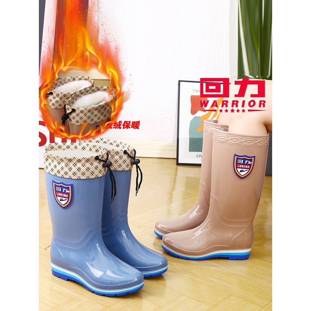 回力正品雨鞋女士高筒中筒加绒保暖防水防滑胶鞋加厚加棉长筒雨靴