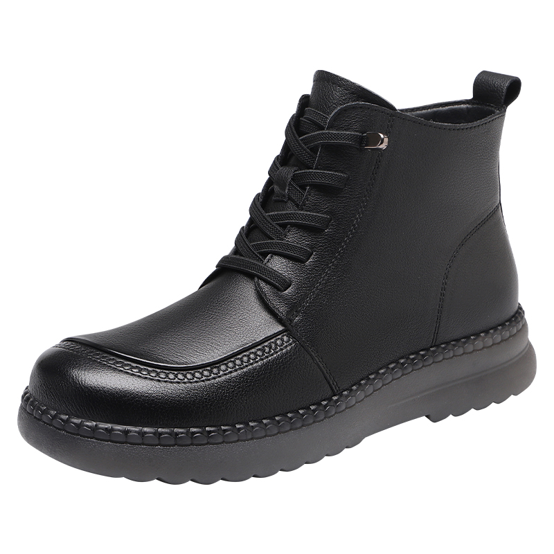 红蜻蜓妈妈棉鞋2025秋冬新款女鞋加绒高帮皮鞋保暖中老年短靴鞋子