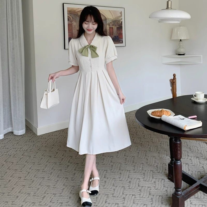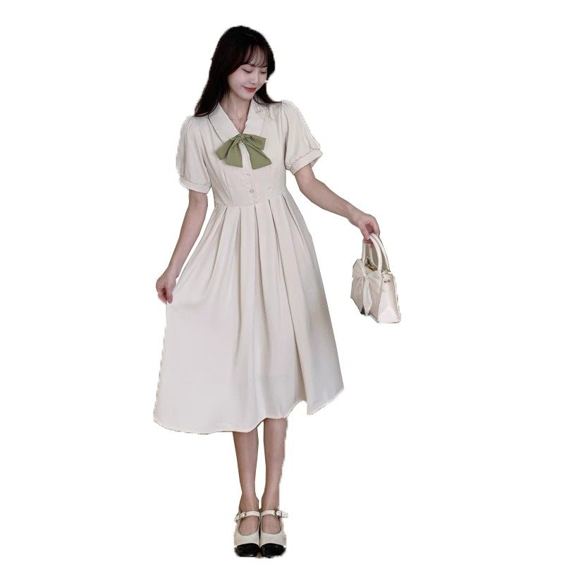 初高中学生百褶裙日系小清新蝴蝶领结收腰显瘦连衣裙女夏季长裙子