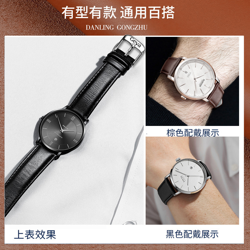GEYA/格雅手表带男女真皮机械表链牛皮防水针扣粉红色灰色14 22mm