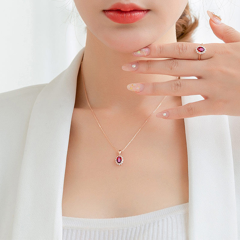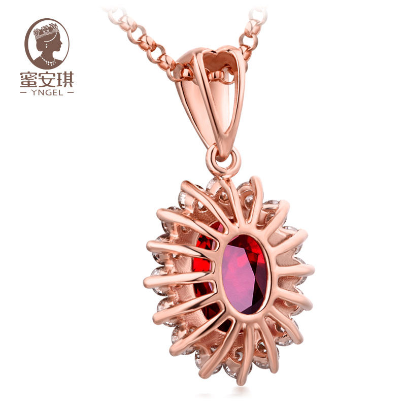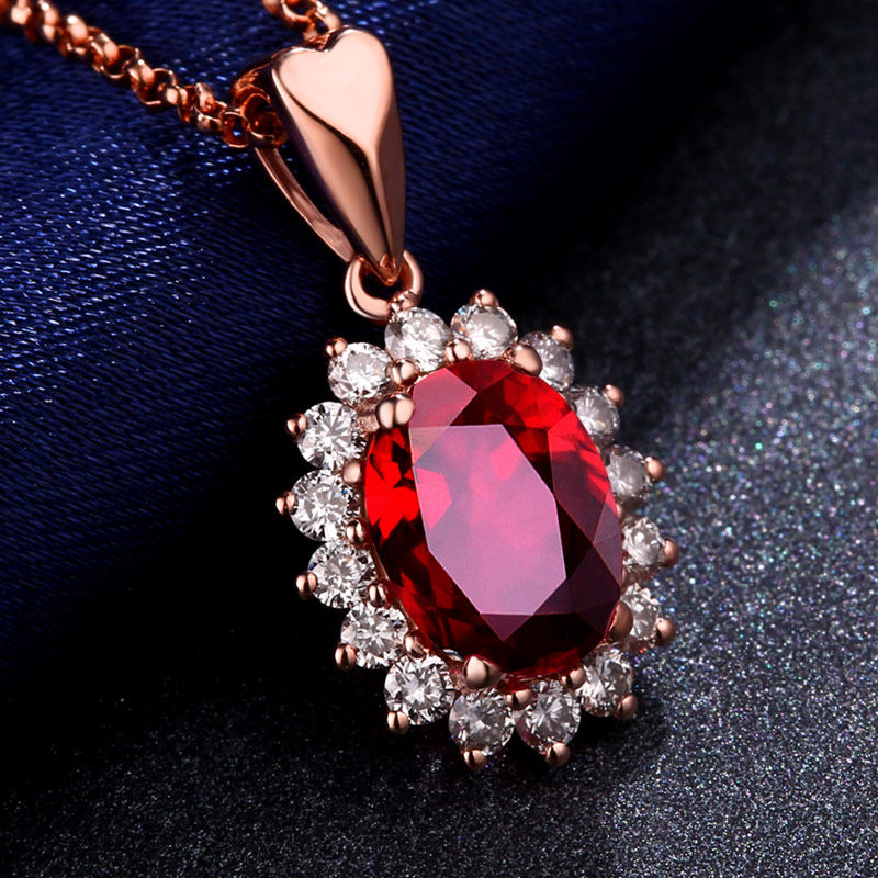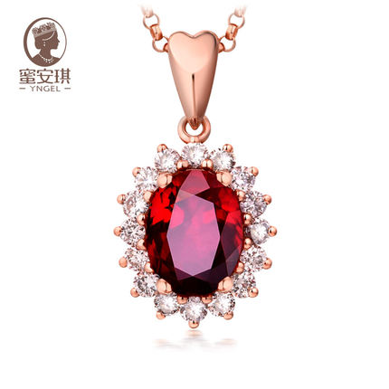蜜安琪 戴妃款鸽血红天然红宝石吊坠18k 金镶钻石项链彩宝定制