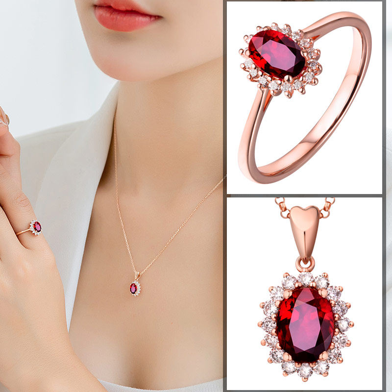 蜜安琪戴妃款鸽血红金镶钻石项链