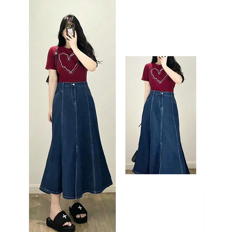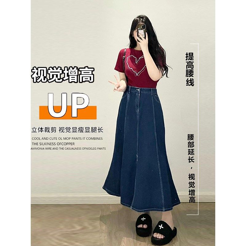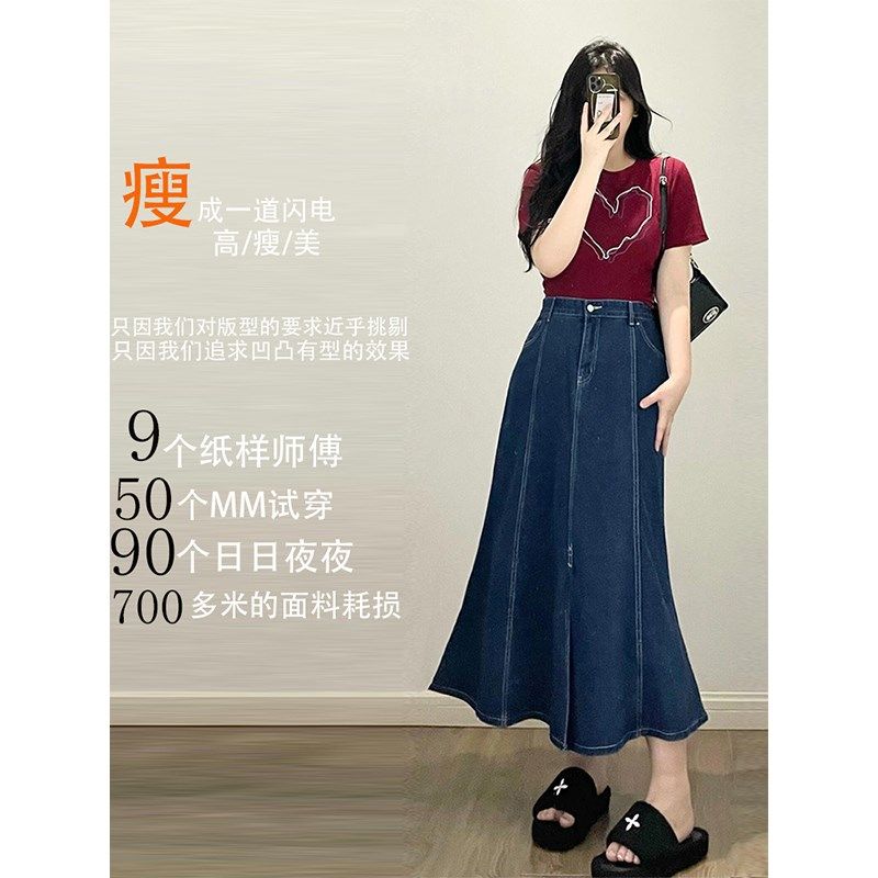 300斤胖mm女装复古牛仔半身裙女夏季显瘦大P码裙子淑女鱼尾中长裙