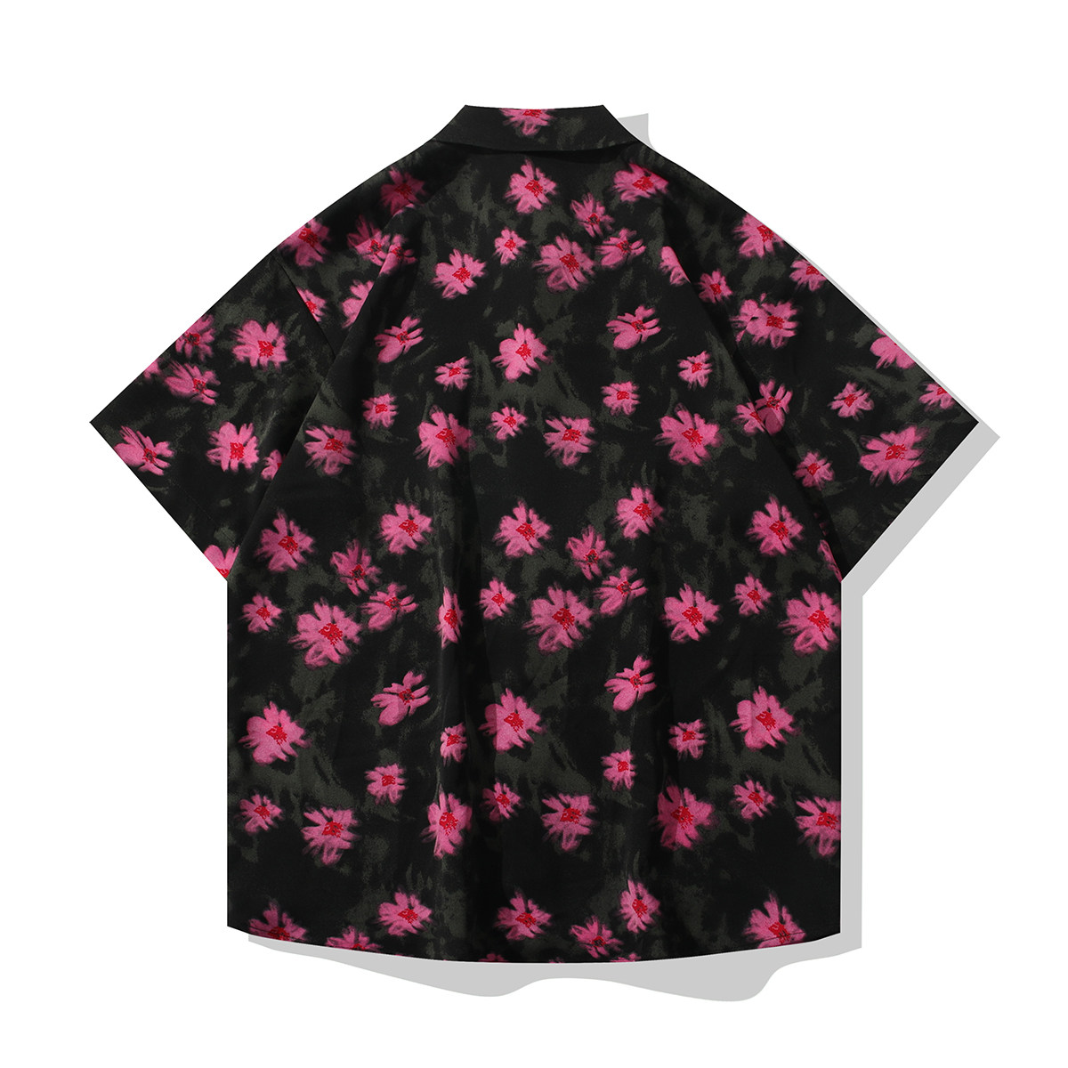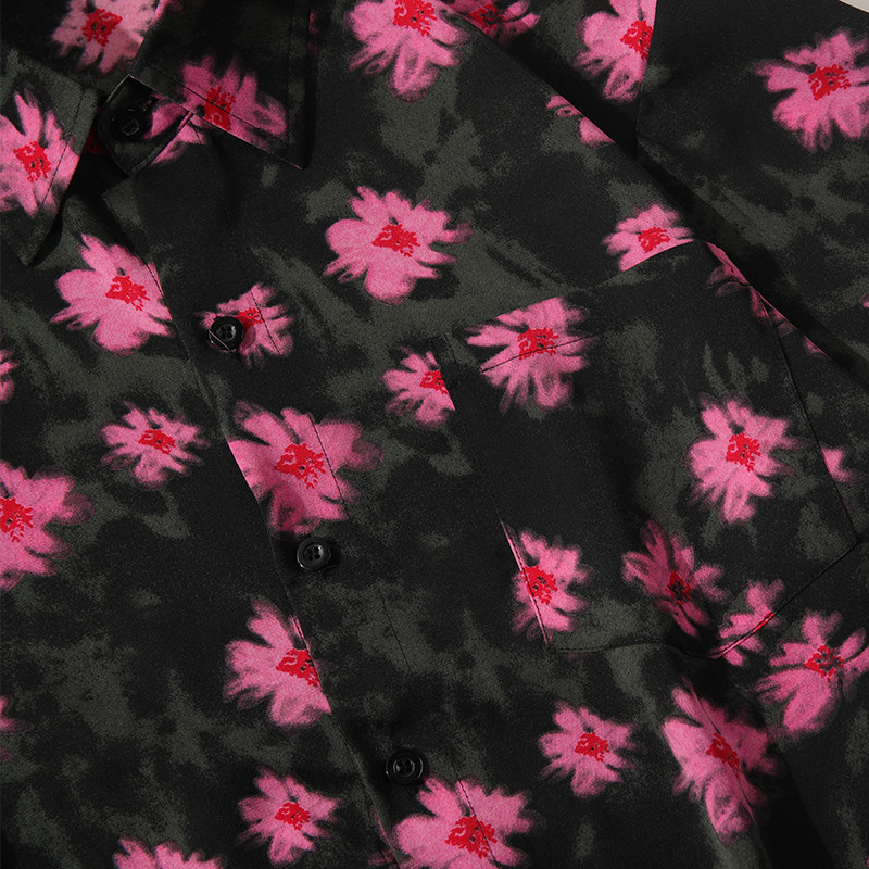 夏季国风花卉冰丝短袖衬衫薄款透气凉感情侣宽松衬衣复古时尚痞帅