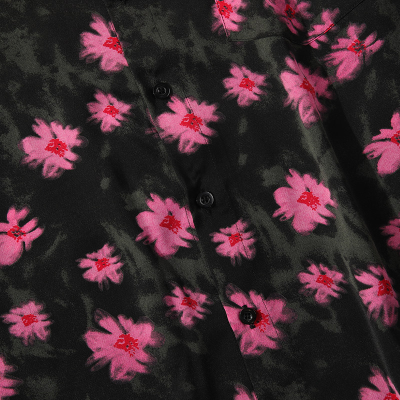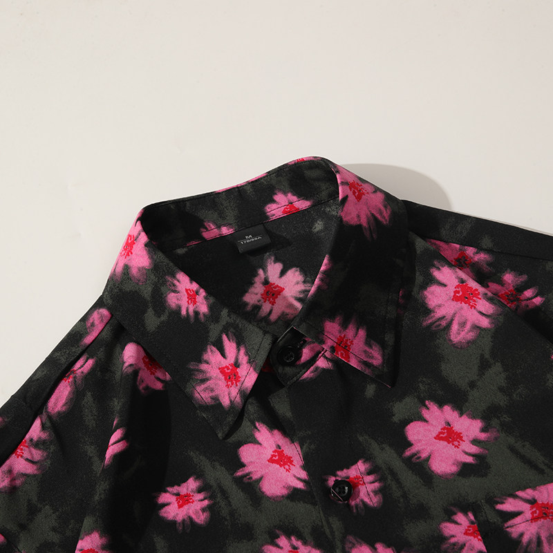 夏季国风花卉冰丝短袖衬衫