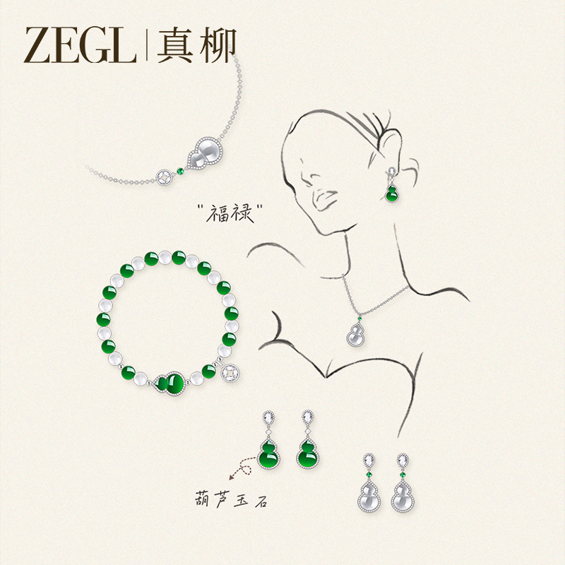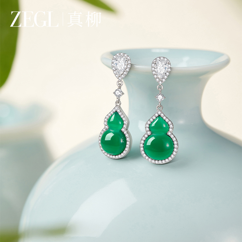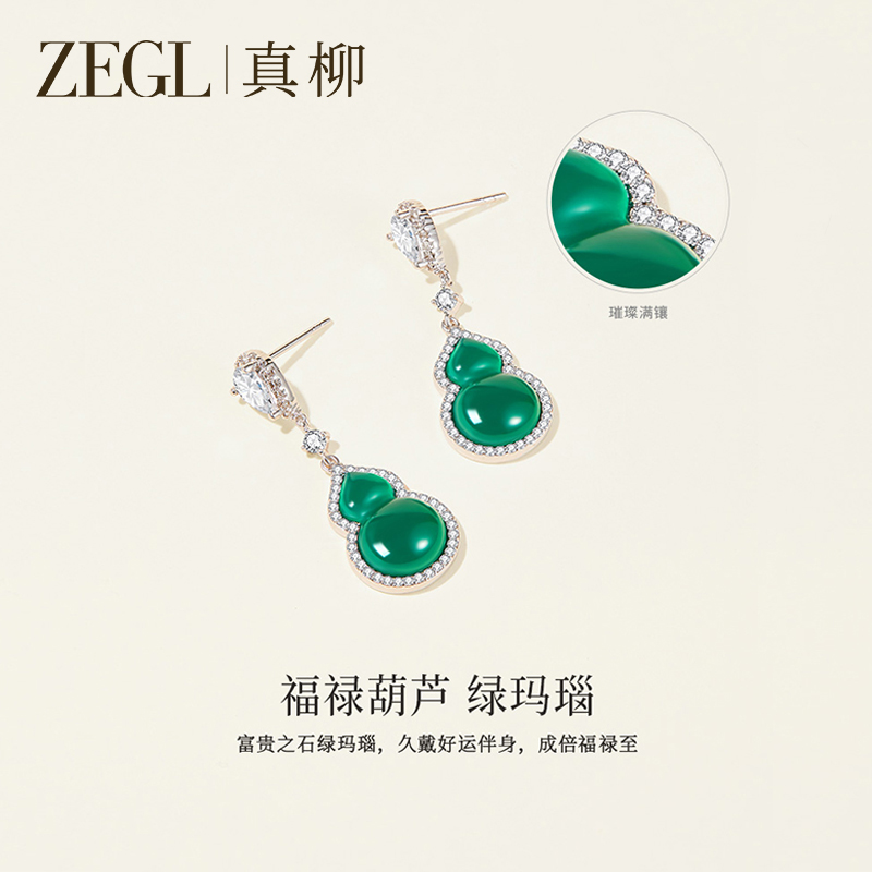 ZEGL真柳葫芦耳钉新中式绿玛瑙耳环女国风耳坠高级轻奢秋冬耳饰