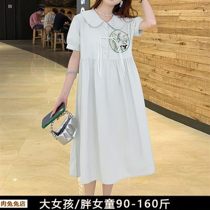 胖女孩公主裙夏装新款初中学生裙子女大童胖女童连衣裙加肥加大码