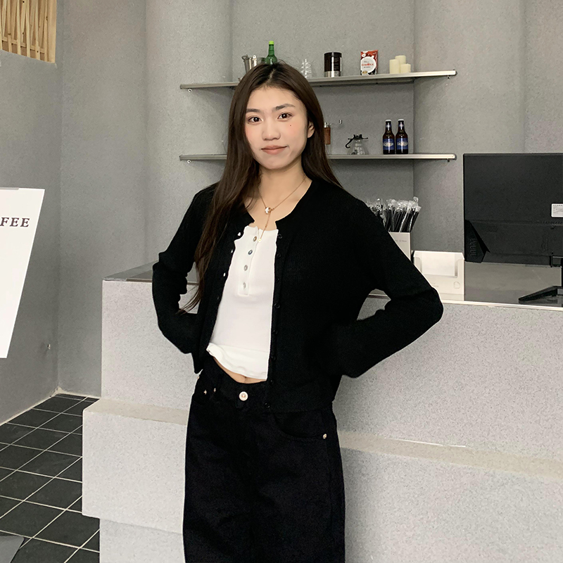 橘子树在哪儿黑色长袖针织开衫