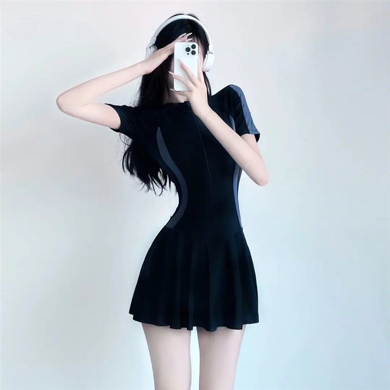 胖mm连身裙高级专用女孩泳衣学生保守显瘦遮肚上课泡温泉游泳馆夏