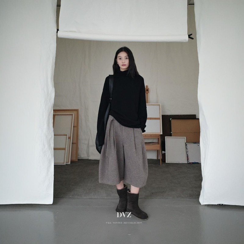 DVZ欧洲站2025冬季时尚百搭高腰显瘦阔腿裤女宽松休闲羊毛长裤潮1