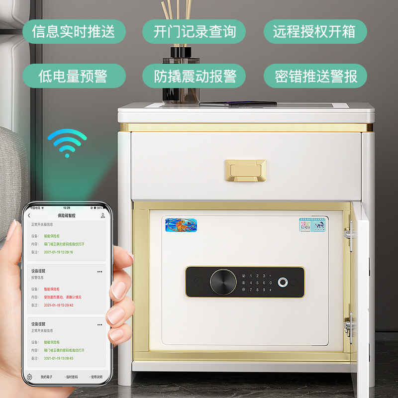 【特价清仓】虎牌床头柜保险箱一体52/54/56/59/60cm高保险柜家用远程WIFI报警小型防盗简约现代智能密码储物