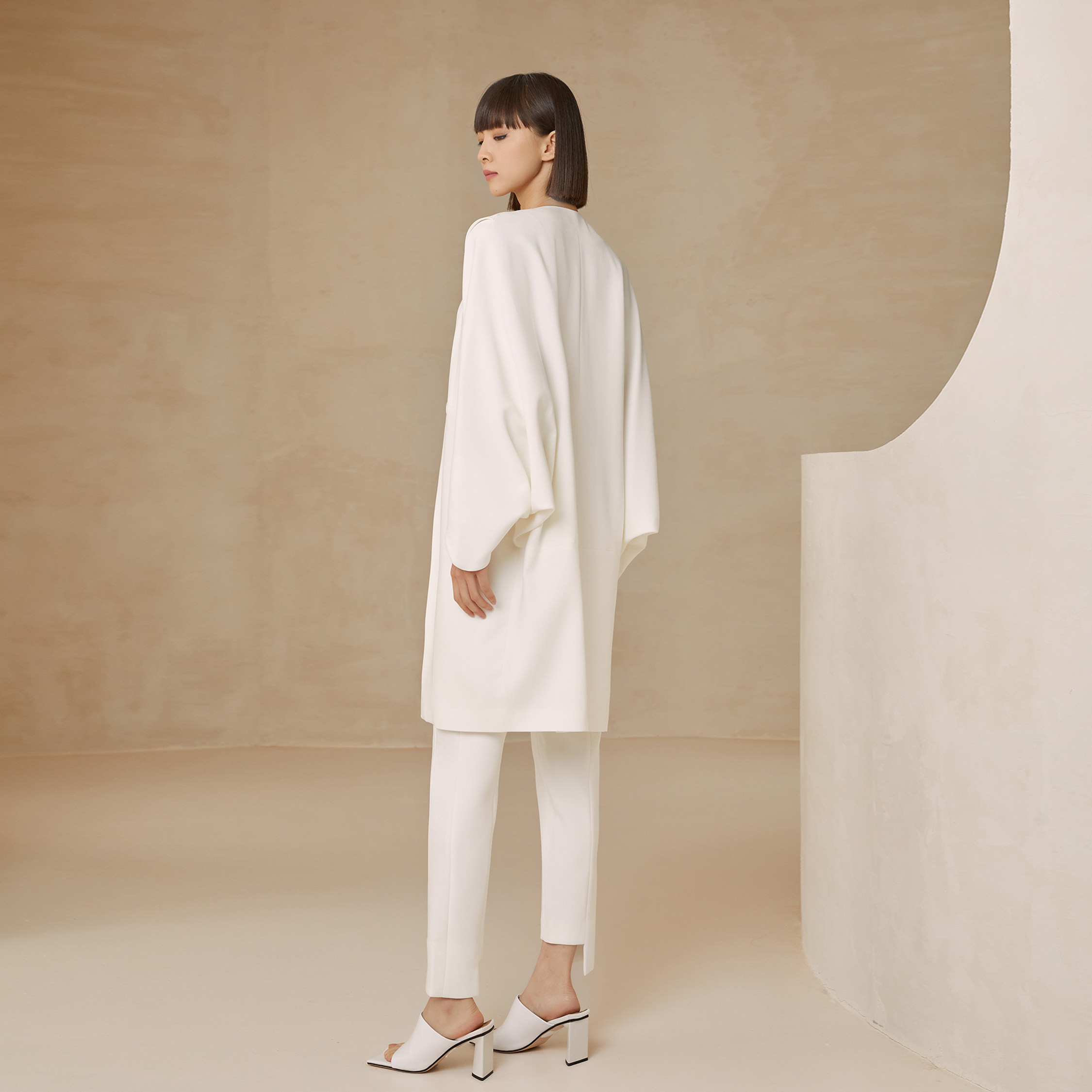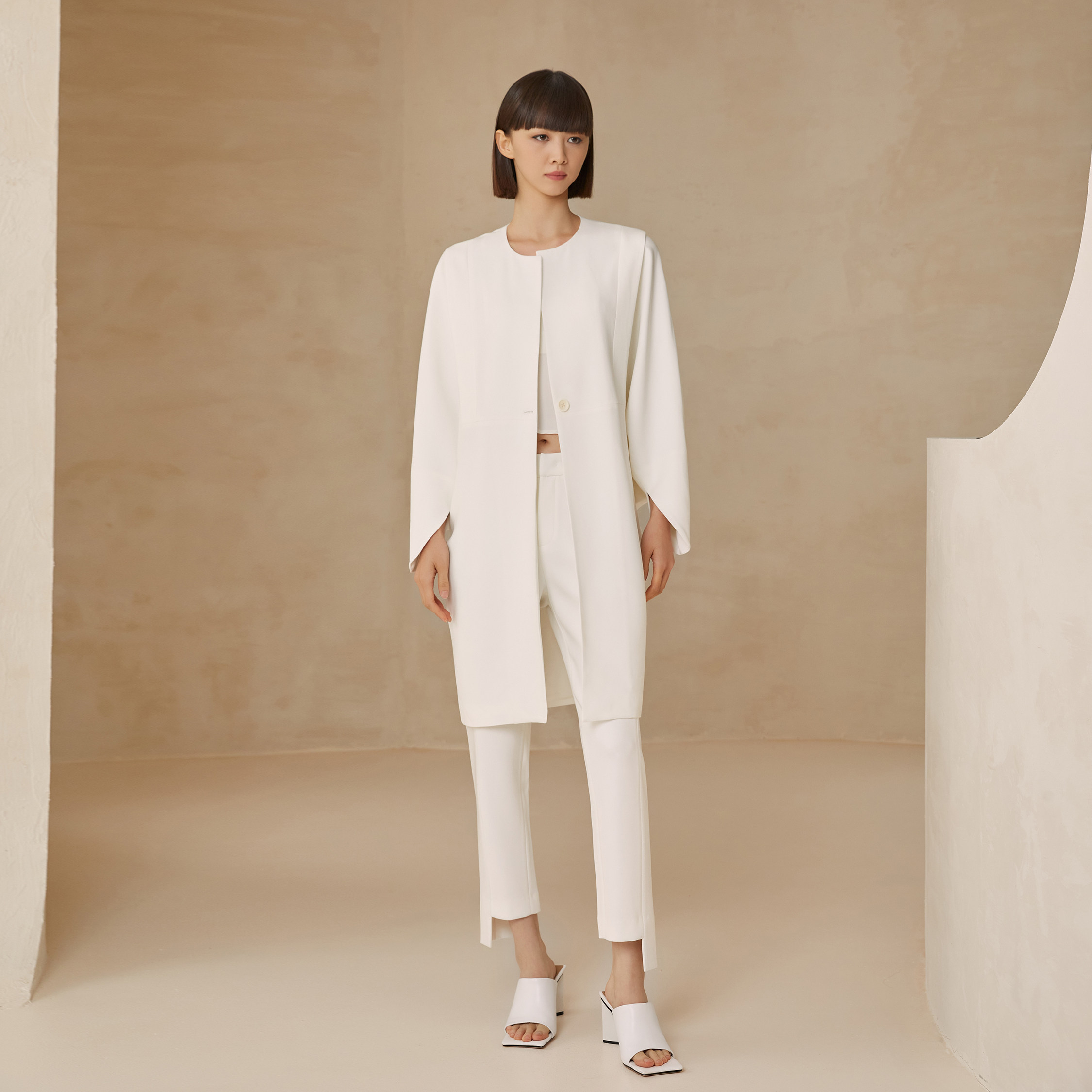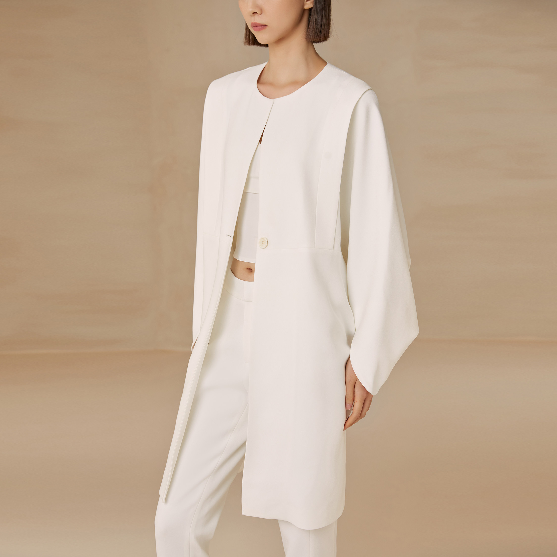 TU女装三醋酸白色中长款高智感西装外套26年新款宽松廓形风衣