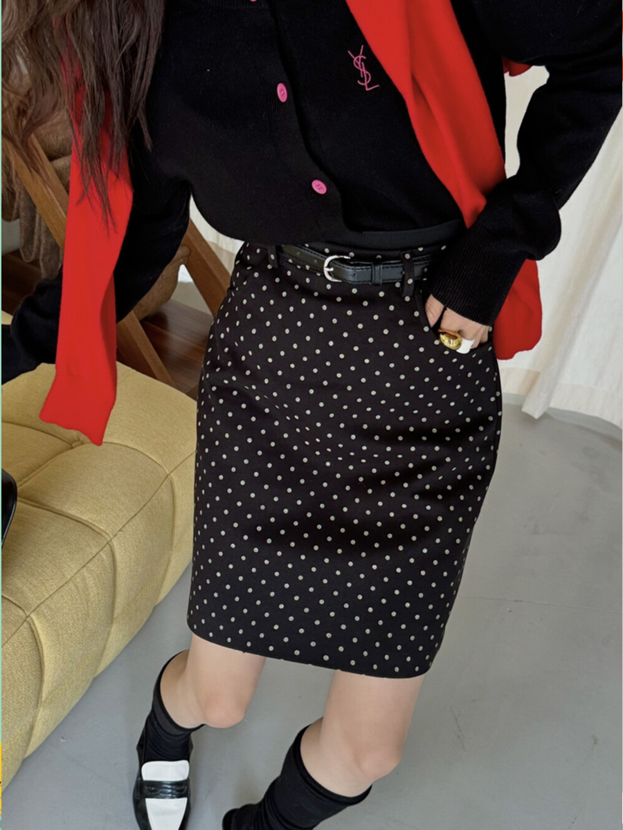 2025新春款黑色波点西装半身裙女大码高腰显瘦a字包臀开叉一步群