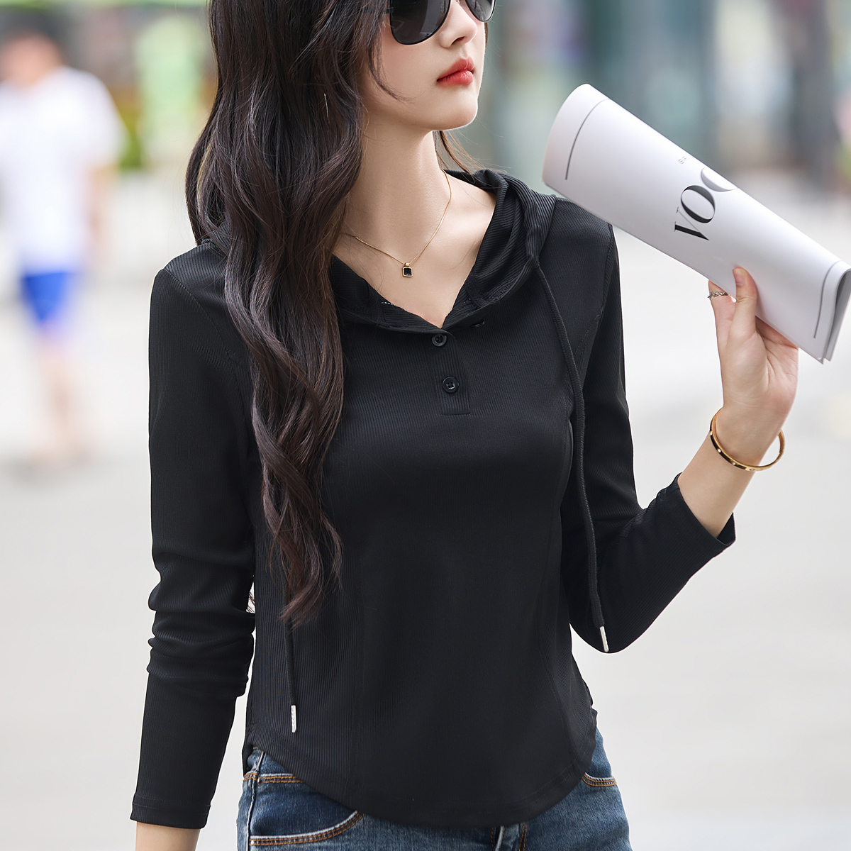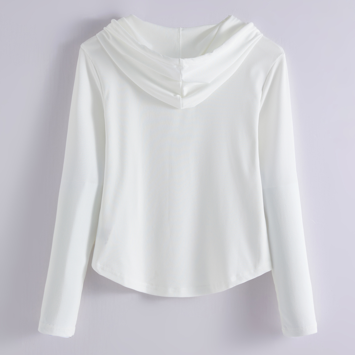 小个子显高显瘦白色长袖连帽卫衣T恤女秋季新款女士时尚短款 上衣