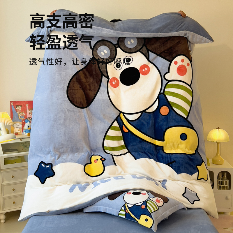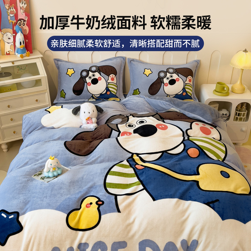 无印良品A类牛奶绒四件套冬季加厚保暖法兰珊瑚绒儿童三件套床品4