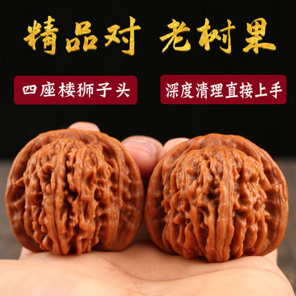 核桃文玩王勇官帽包浆核桃玉化盘玩狮子头男士把玩古玩精修打底