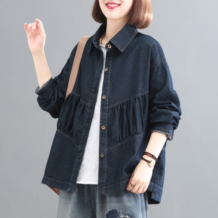 孔雀飞飞春秋新款大码显瘦复古时尚气质牛仔衬衣外套女韩版宽松
