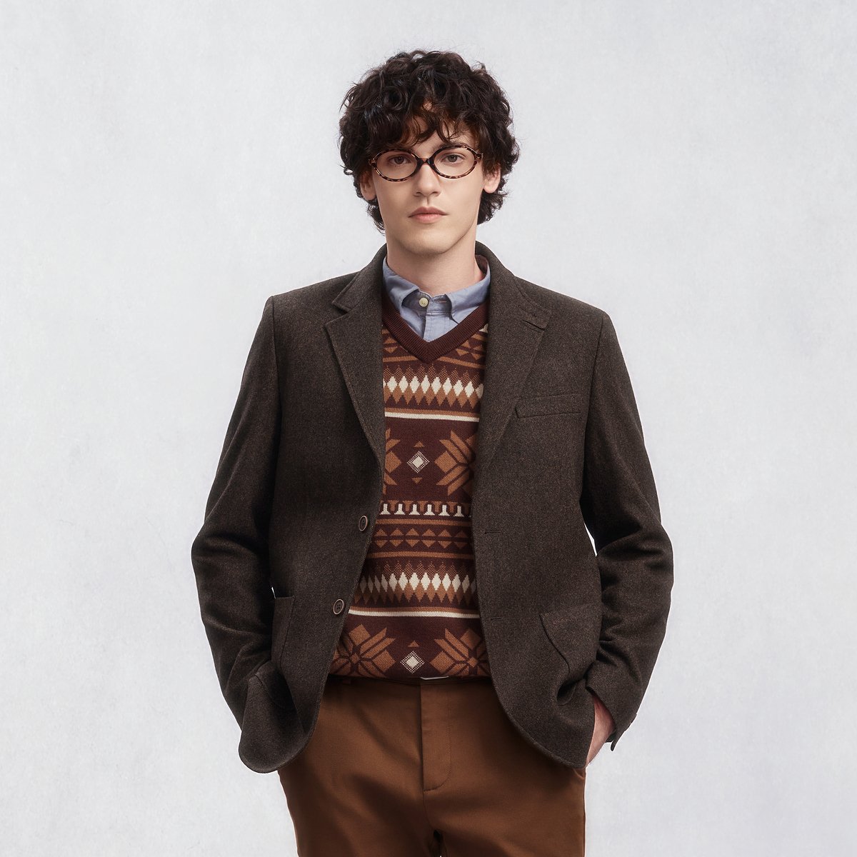 【100%绵羊毛】GANT/甘特25秋冬男上衣平驳领复古休闲单西服外套