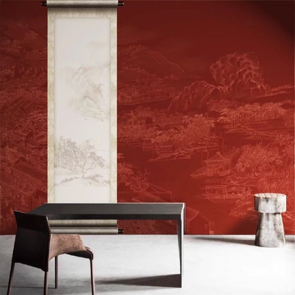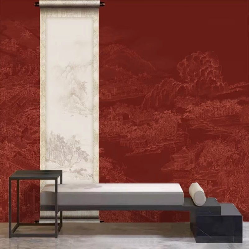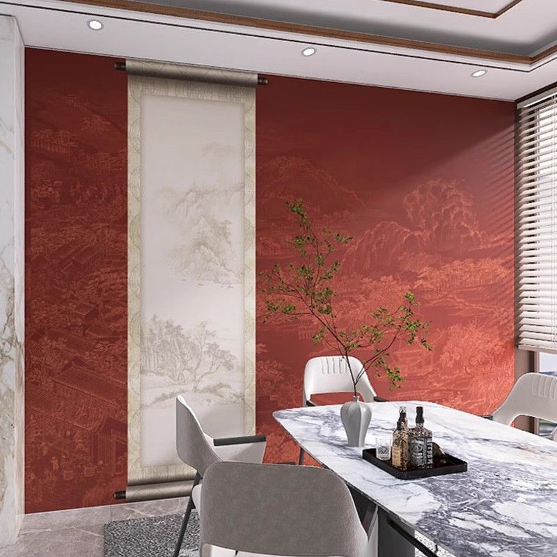 新中式背景墙壁纸饭店餐厅包厢墙布中国故宫红古风墙布火锅店墙纸